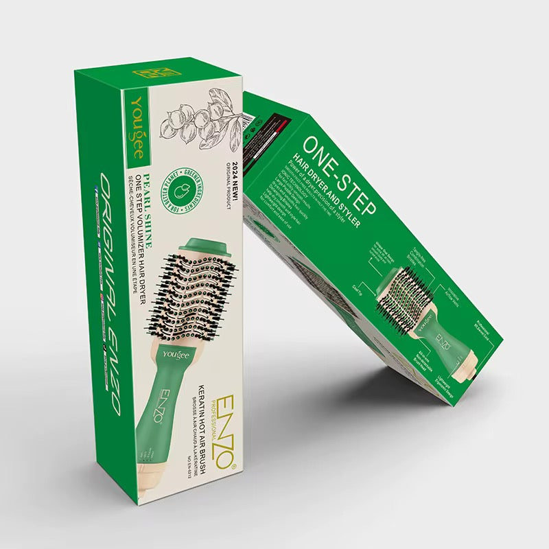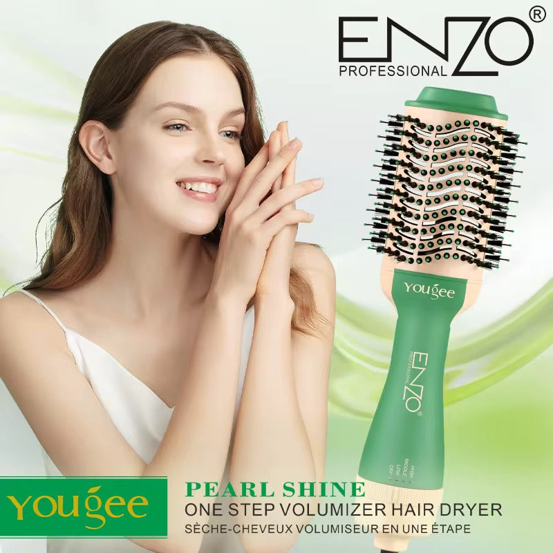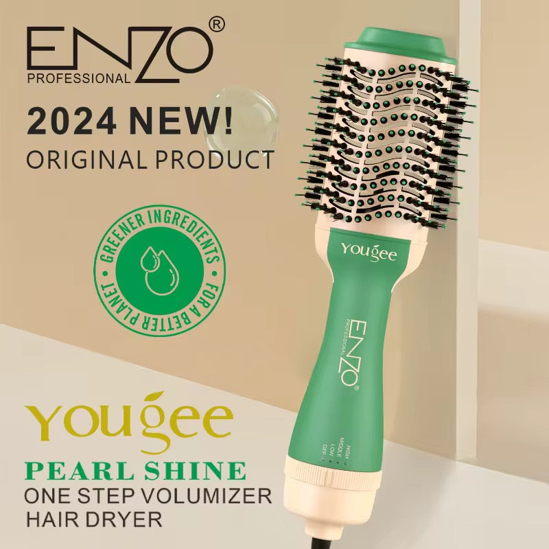 **🌟 اكتشف الفخامة والأداء مع المشط الحراري الذهبي الأخضر من ENZO!**
