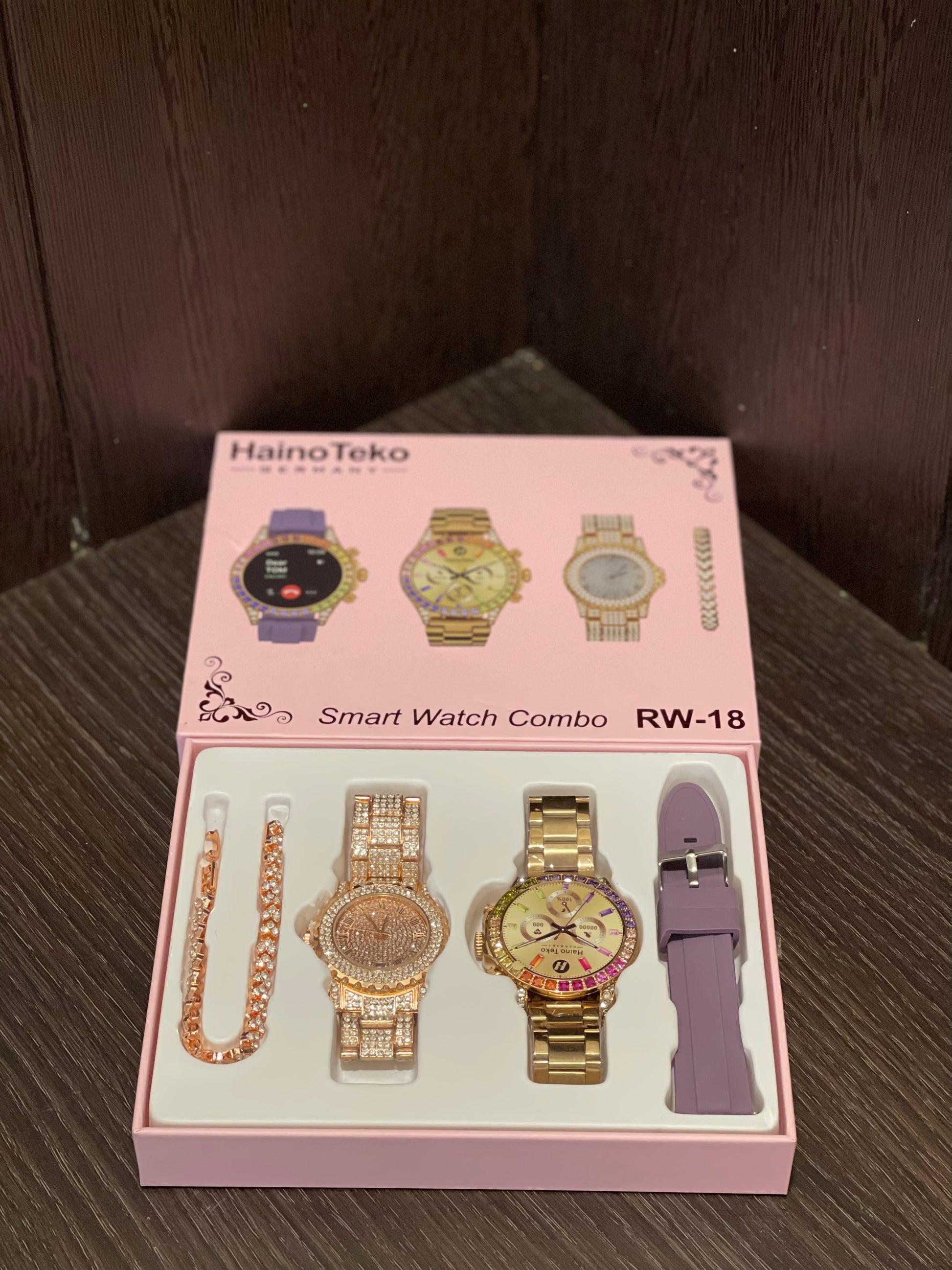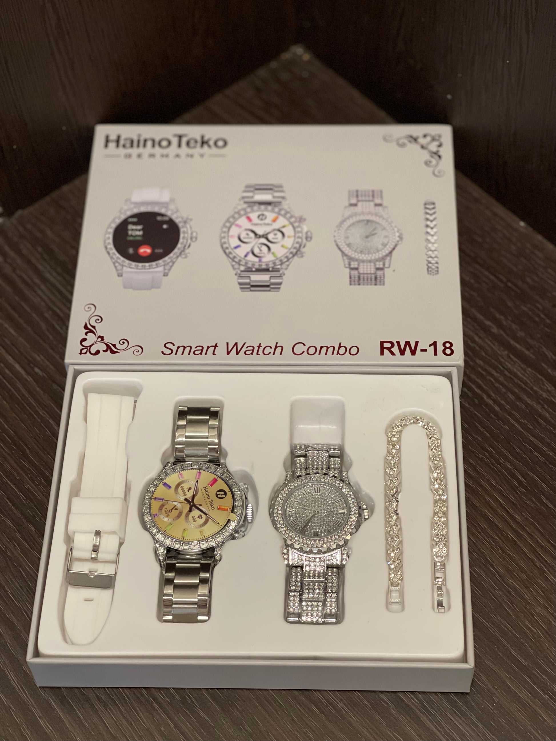 افضل هدية 🎁 للزوجة او الحبيبة 💍❤️او الأم ❤️او لنفسك سيدتي 😍❤️ساعة أصلية 💯💯و فخمة 🤩😌 ✨✨بحزامين للتبديل و سوار كهدية 😍😌❤️✨✨ HAINO TECKO RW18 ✨✨